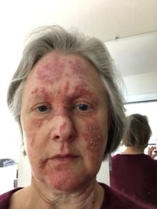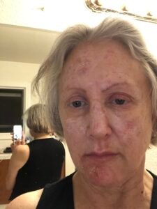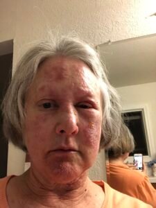 Here’s me 48 hours after my return. My facial swelling and swollen eye necessitated a visit to Urgent Care and resulted in a shot of prednisone (as they are inclined to do when your face and your eyes are involved).